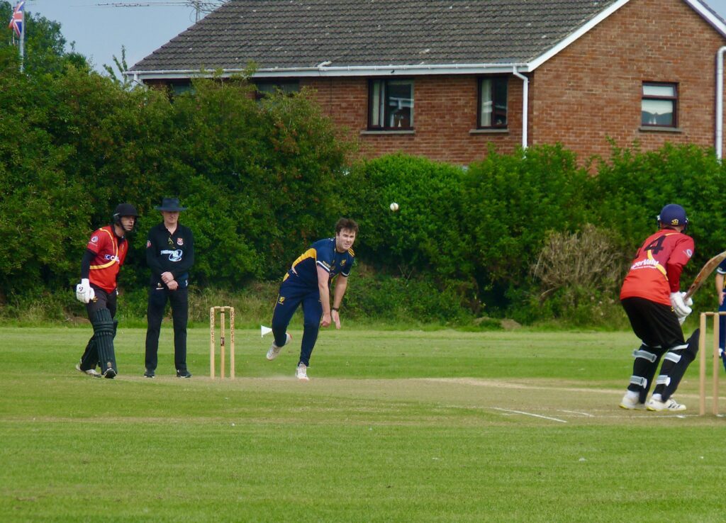 Skelly and Brown opened the bowling for Bangor and operated with trademark accuracy, swing, and control, as they aimed to gain the upper hand in the early stages. Brown had an appeal for caught behind turned down in the early stages. But, in the face of this rejection, Bangor turned the screw even tighter, as Skelly held his line until Johnston hit a shot on the full to Pyper at extra cover, who coolly caught his second catch of Skelly in as many games, and Lurgan were now 17-1.